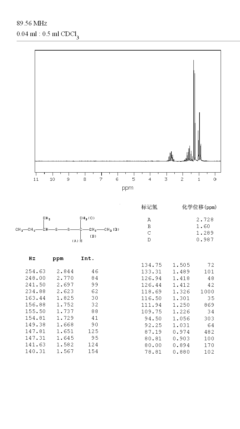 标签 | sec-Butyl disulfide, [C2H5CH(CH3)]2S2 |