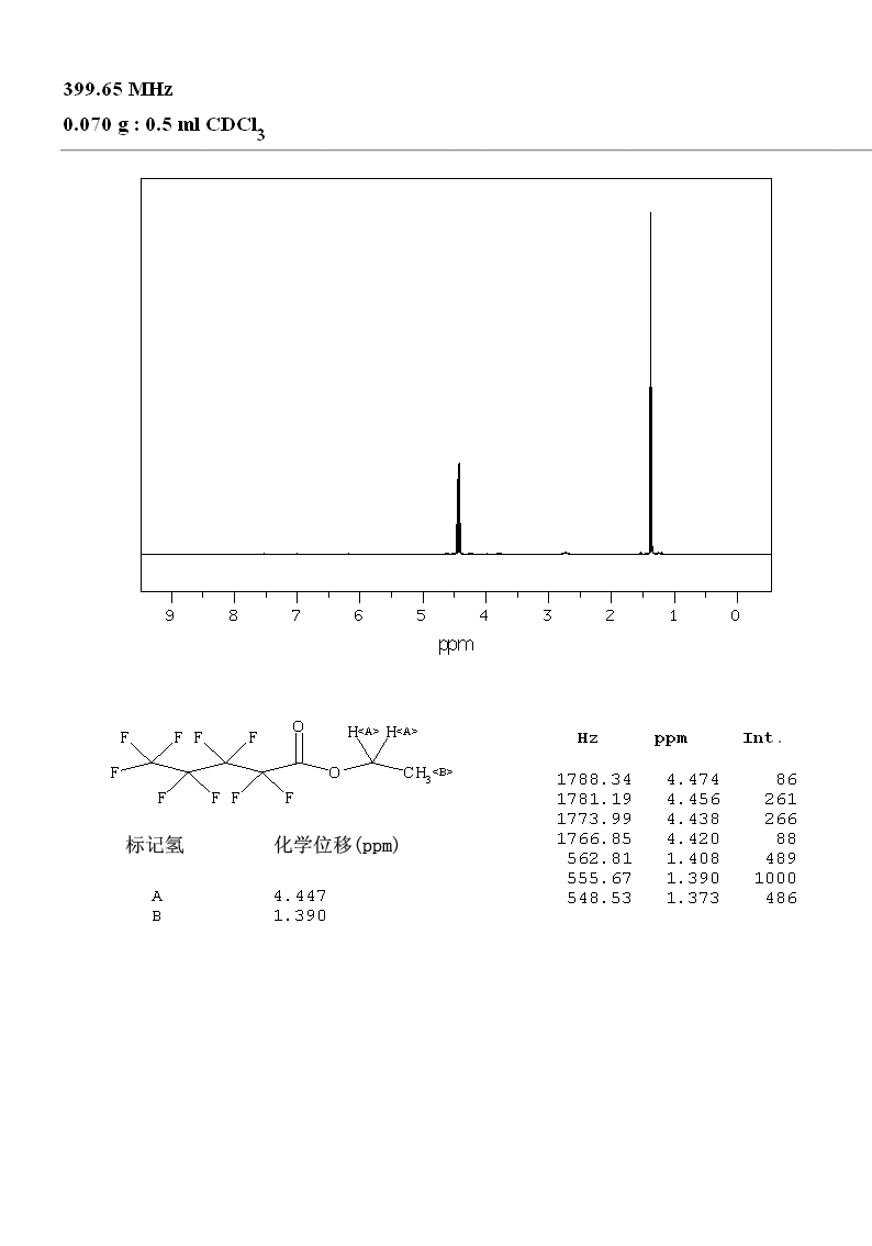 | 标签 | 全氟戊酸乙酯, ETHYL NONAFLUOROPENTANOATE, ETHYL NONAFLUOROVALERATE, ETHYL PERFLUOROPENTANOATE, ETHYL PERFLUOROVALERATE, NONAFLUOROVALERIC ACID ETHYL ESTER, PERFLUOROVALERIC ACID ETHYL ESTER, Ethyl perfluoropentanoate 98%, Ethylperfluoropentanoate98% |
