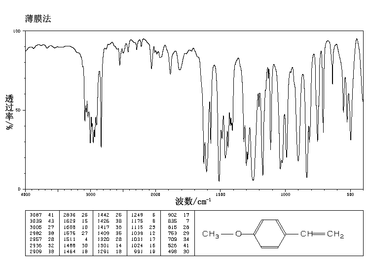 | 标签 | 4-甲氧基苯乙烯, 4-乙烯基苯乙醚, 4-Methoxystyrene, 1-Ethenyl-4-Methoxybenzene, 1-Methyoxy-4-vinyl-benzene, 芳香族系列 |