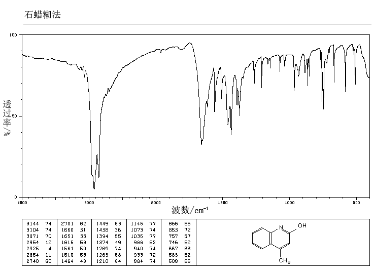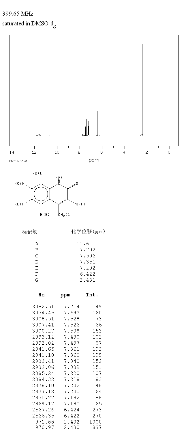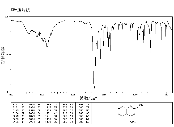 | 标签 | 4-甲基-2(1H)-喹诺酮, 4-甲基-2-羟基喹啉, 4-甲基喹啉酮, 4-甲-2-喹啉酚, 4-Methyl-2-quinolinol, 4-Methylcarbostyril |
