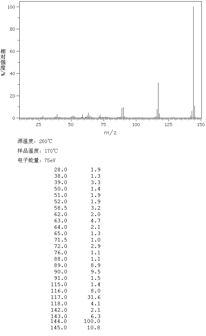 五、分子性质数据: 1、 摩尔折射率:46.42 2、 摩尔体积(m3/mol):119.0 3、 等张比容(90.2K):331.0 4、 表面张力(dyne/cm):59.8 5、 极化率(10-24cm3):18.40